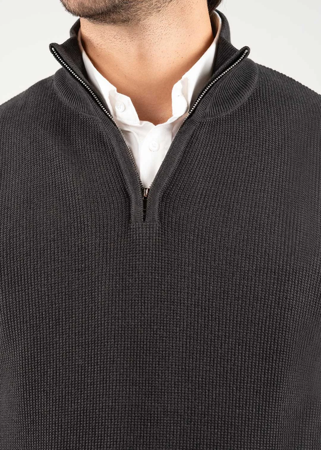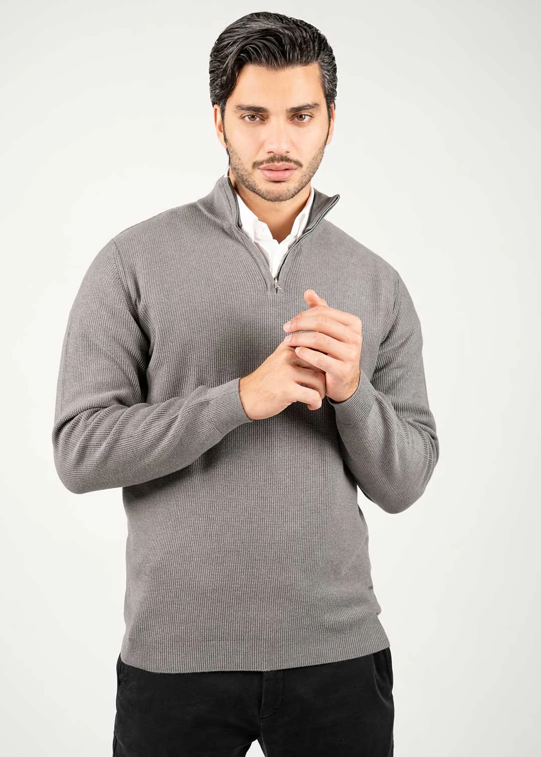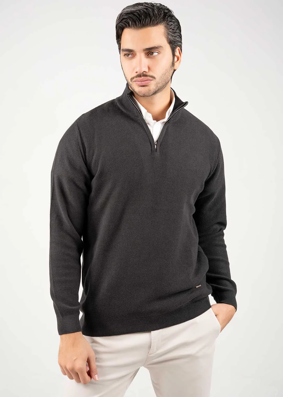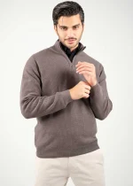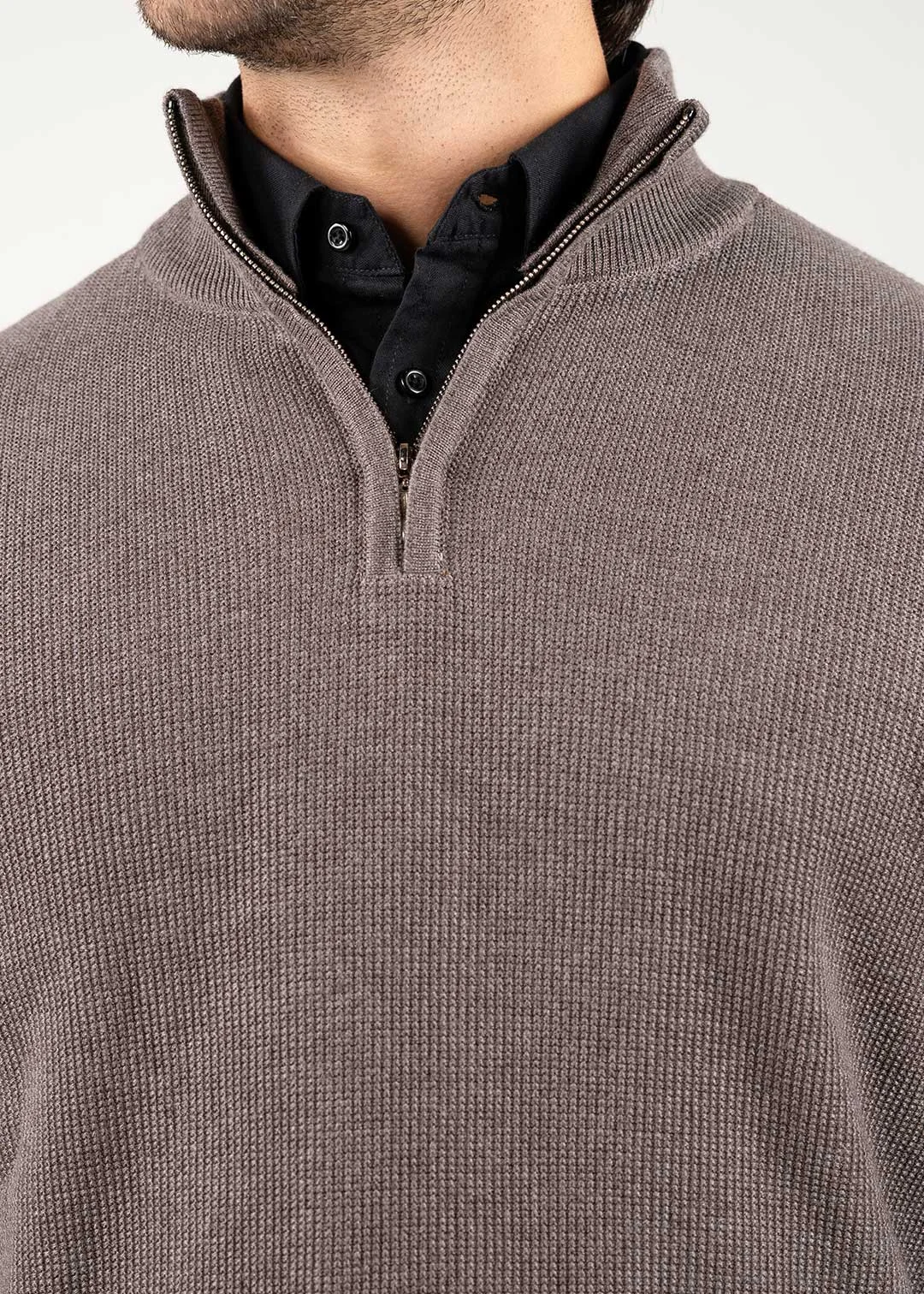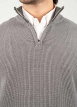 بافت نیم زیپ فندوقی ذغالی ملانژ